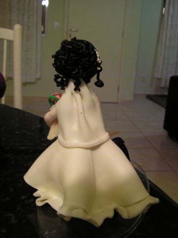 Caixinha de mdf 5x5x5, com pintura perolizada e copos de leite de biscuit. com tercinhos